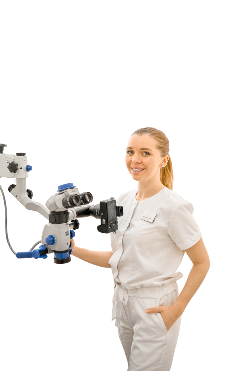 Микроскоп гарантирует высокую точность и качество лечения — удаление 100% поражения кариесом